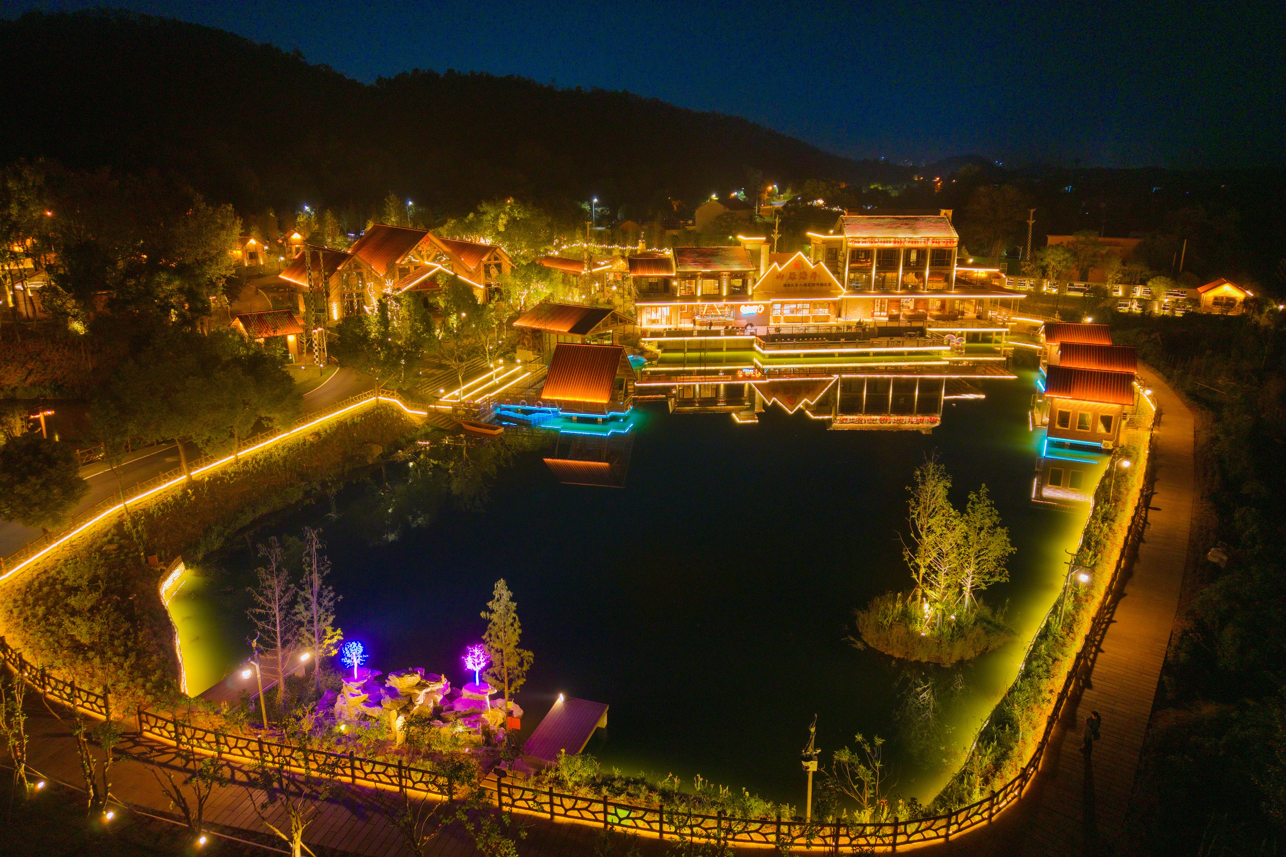 同时,演艺区日常安排有美式乡村乐队、儿童亲子表演、DJ音乐派对及打铁花等演出内容,从早到晚持续营造氛围。