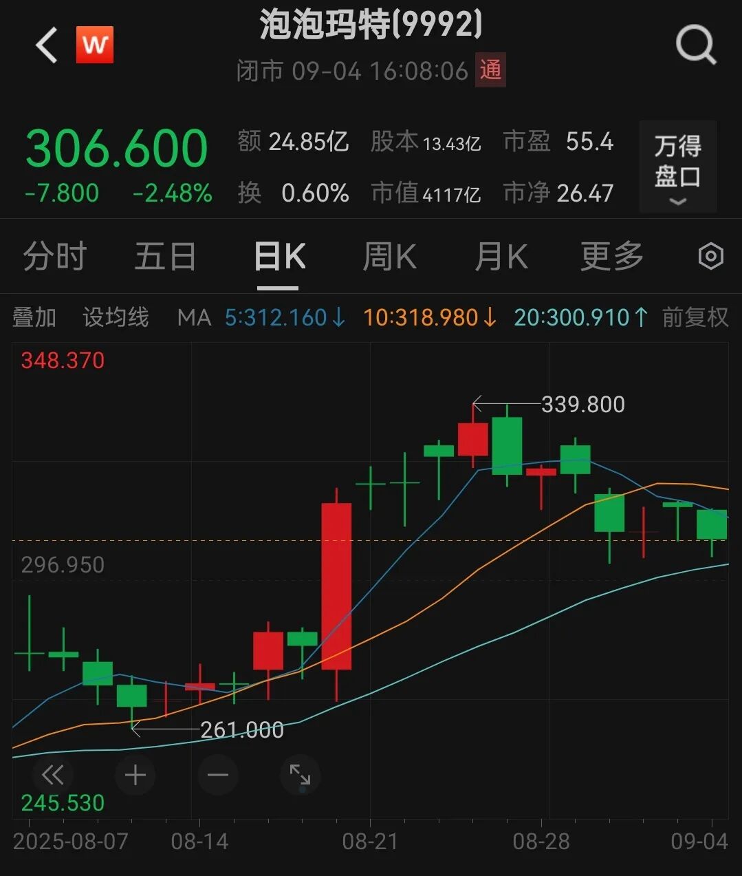 Wind数据显示,迷你版Labubu发售后,截至发稿,泡泡玛特(09992.HK)近5日股价下跌5.49%。