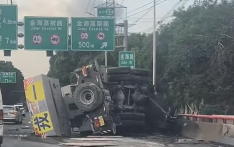 今天(10.8)上午7时许,多位市民报料,S20外环高速内圈近金海高架发生一起大型车辆侧翻事故,道路拥堵,所幸无人员伤亡。